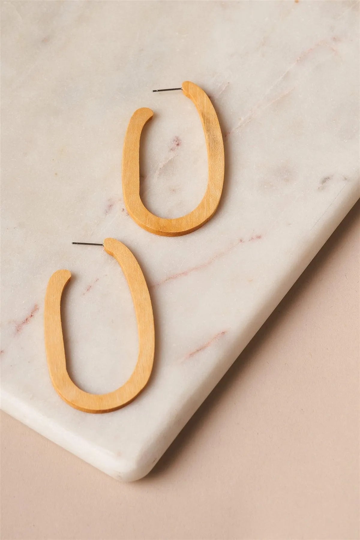 Wood Oval Hoop Earrings /3 Pairs