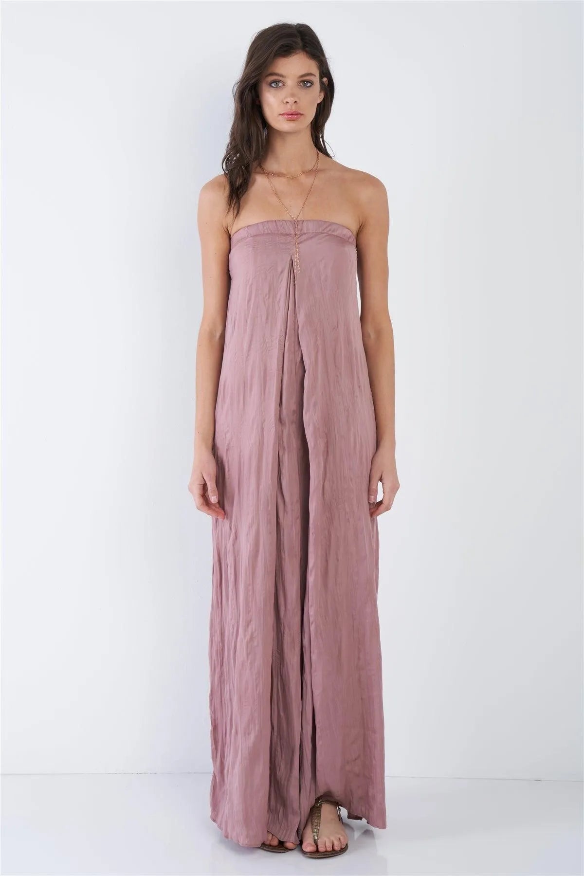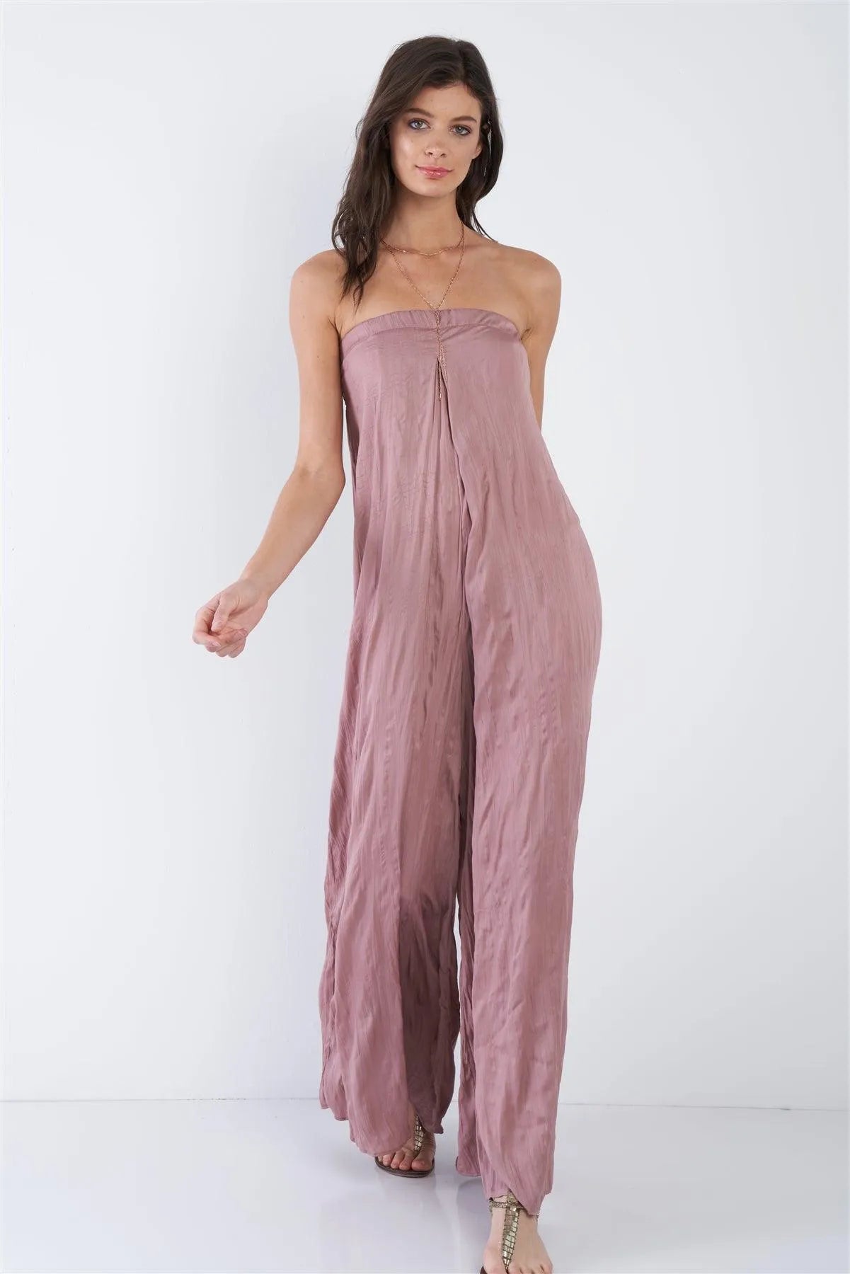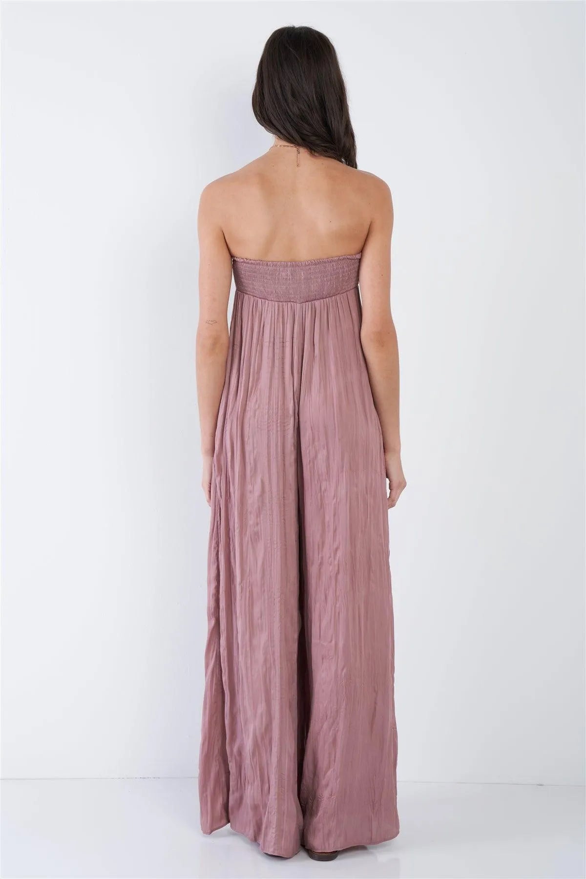 Jumpsuit features: satin, solid, smocked back waist, elastic waist, relaxed fit, wide pant leg, maxi length, super stretchy, unlined.Model is 5'9 wearing a size Small ( Waist: 23.5", Bust: 32B, Hips: 36")Item Measurements: Length: 42" , Bust: 27"Item comes pre-packed with tagsRuns Big Also available in Misty Teal