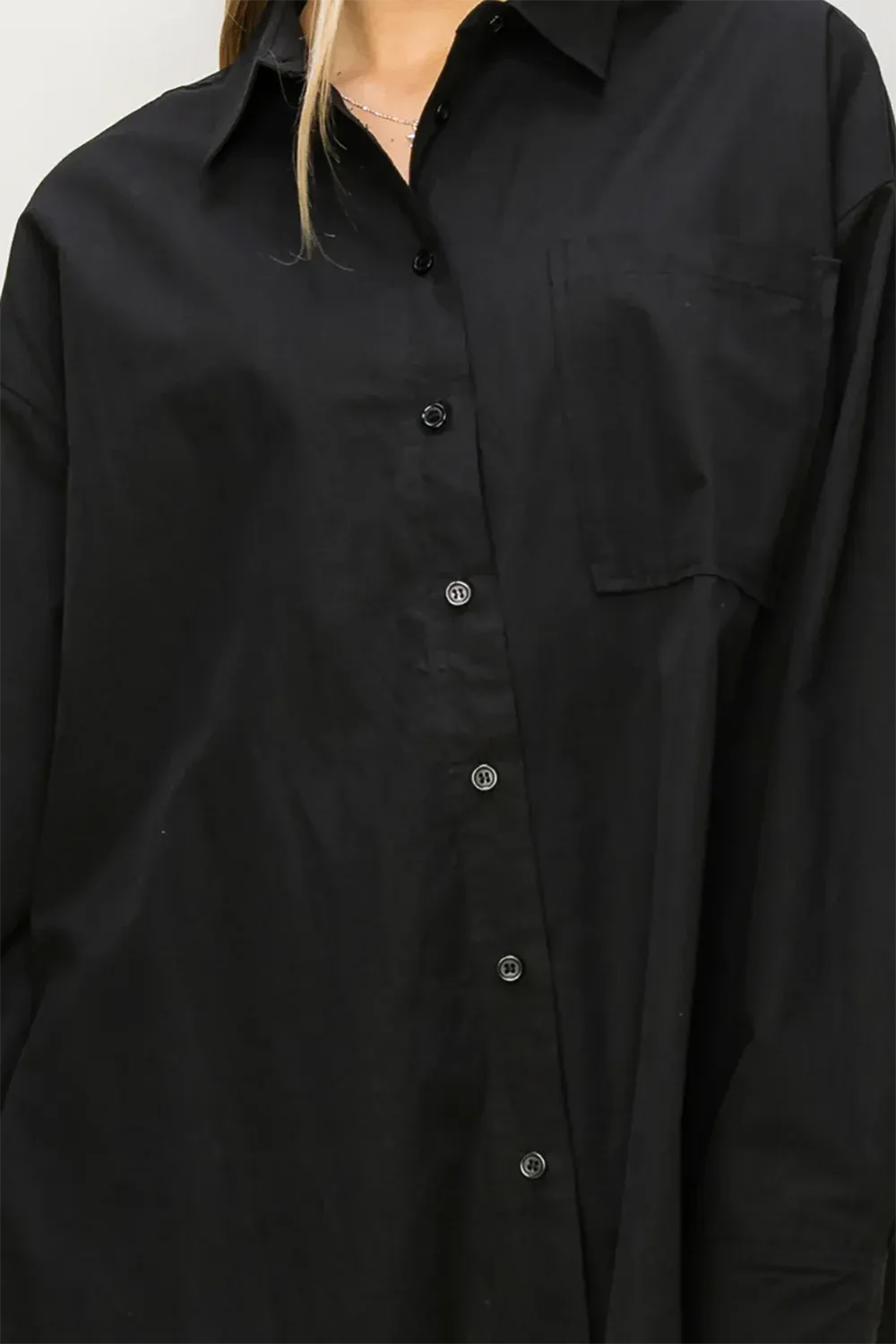 Woven Botton Down Single Pocket Premium Cotton Blazer Top