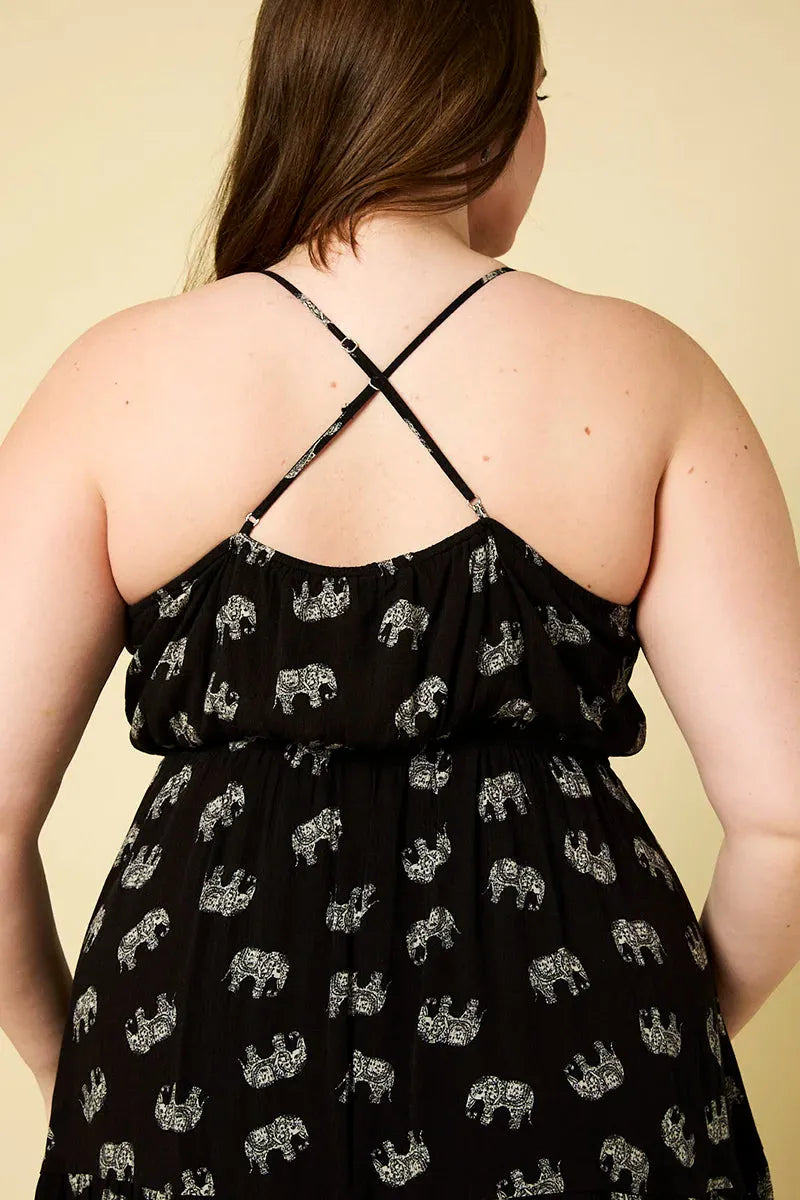 Plus Size Sleeveless Tiered Elephant Print Midi Dress