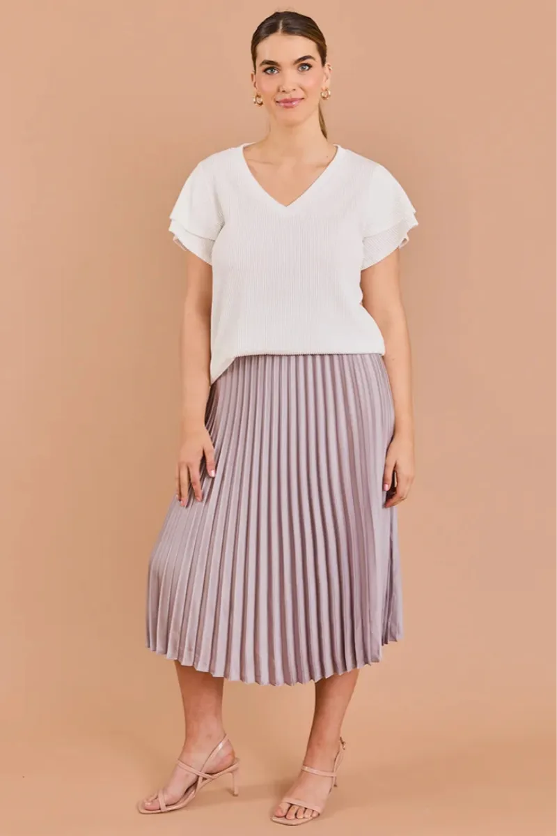 Plus Size Foiled Satin Pleated Metallic Midi Skirt