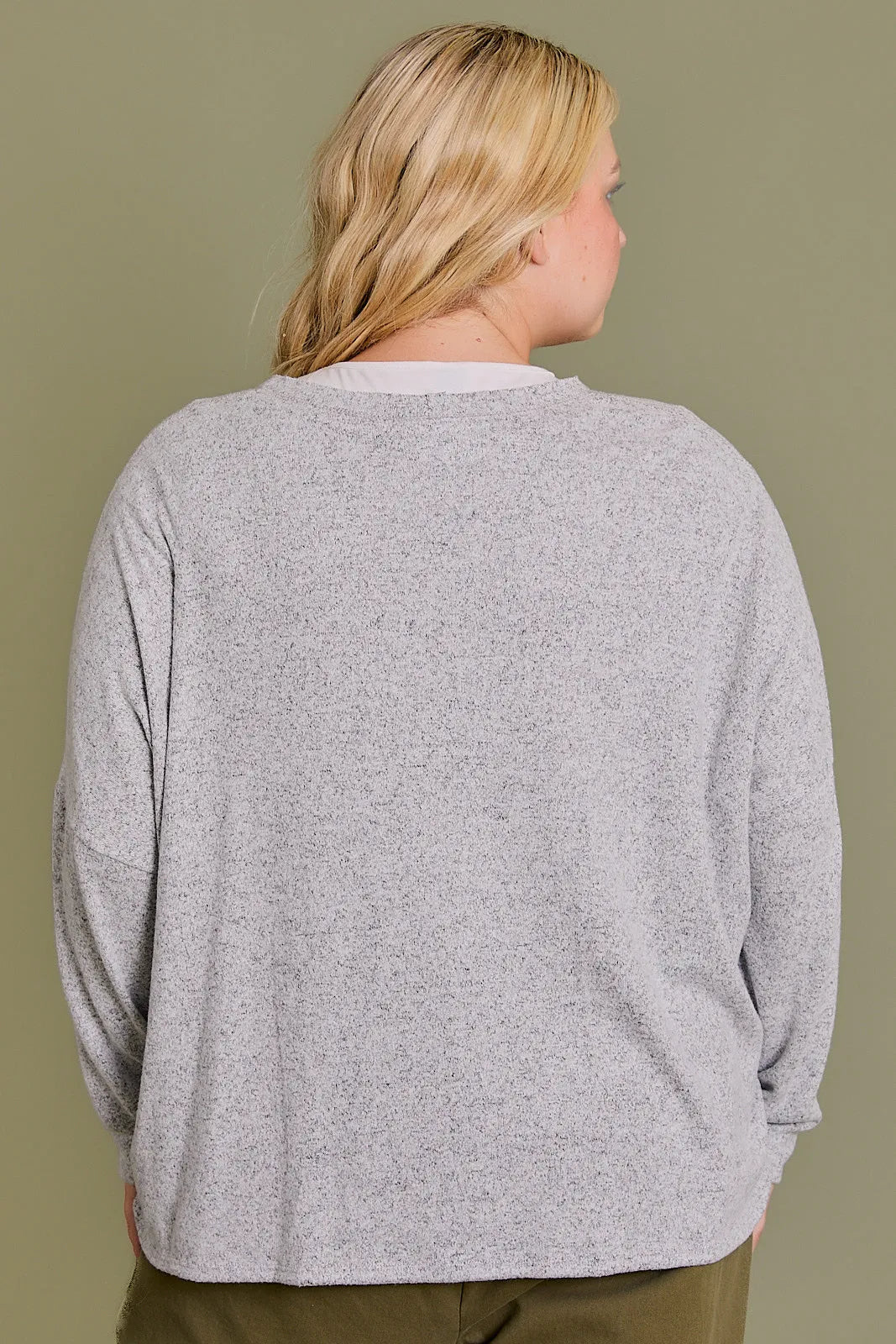Plus Size Oversized Button Cuff Long Sleeve Tunic Sweater TopVendor:Jade by Jane
