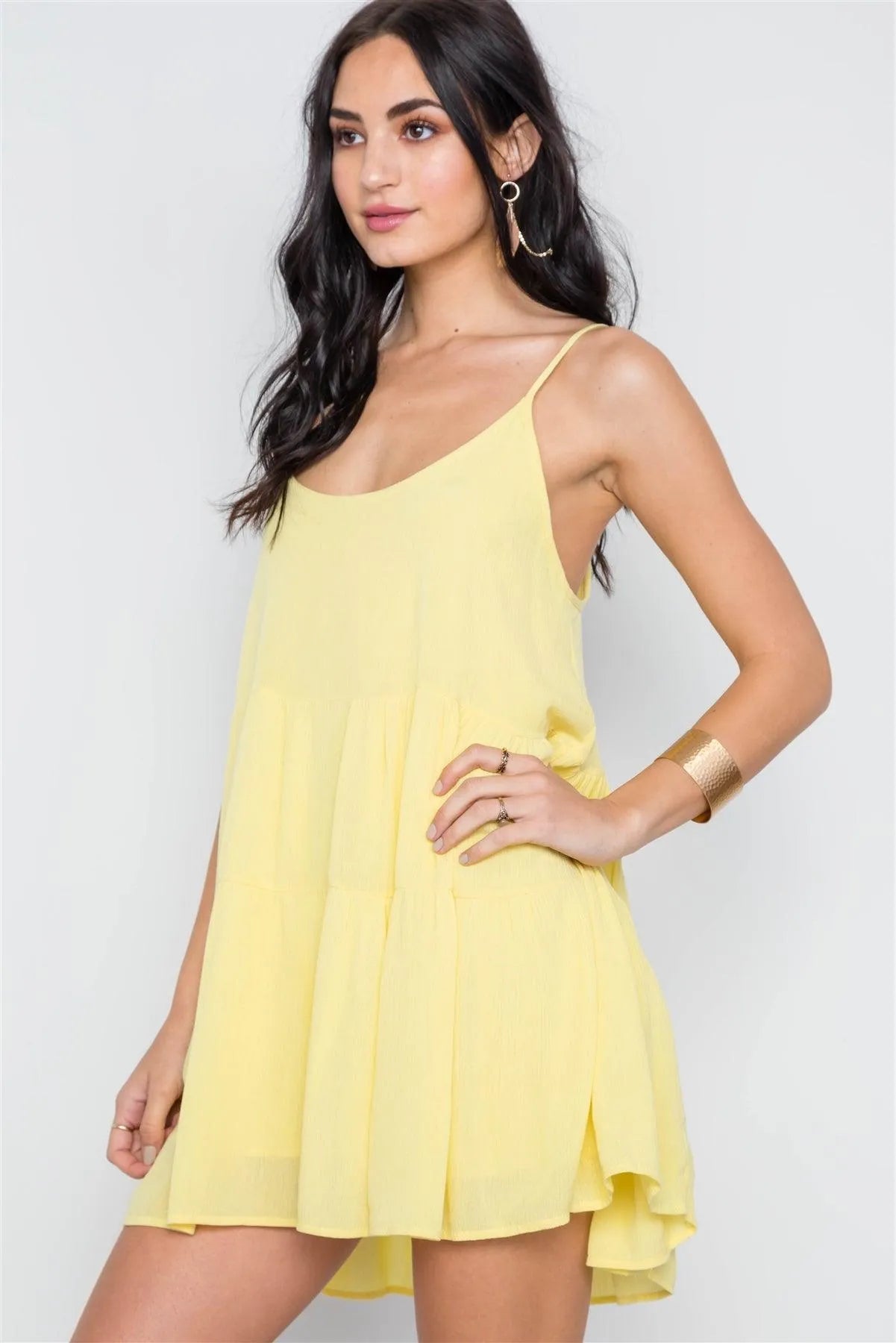 Dress features: adjustable cami straps, lace up back closure, solid, shirred waist and hem, swing silhouette, mini length, linedModel is 5'8 and wearing Small (Waist: 24", Bust: 32A, Hips: 34")Item Measurements: Length: 31.5", Waist: 36"True to size