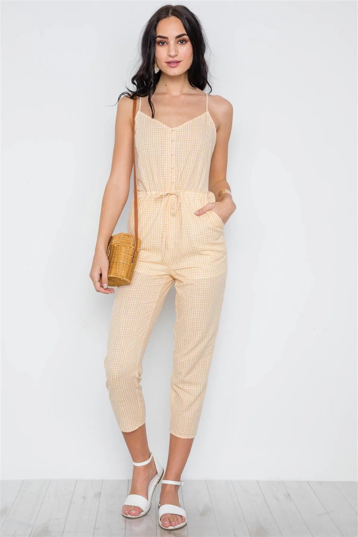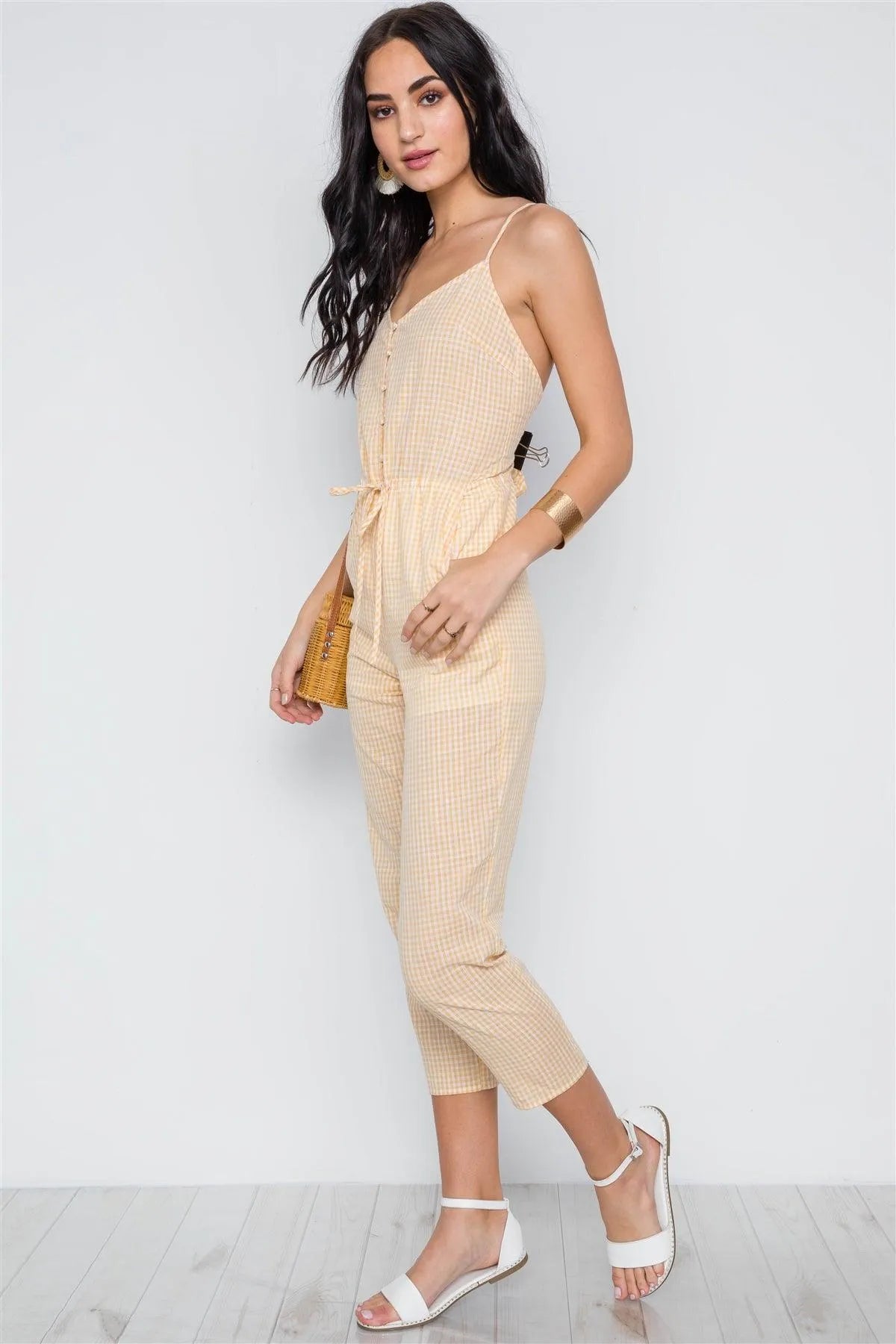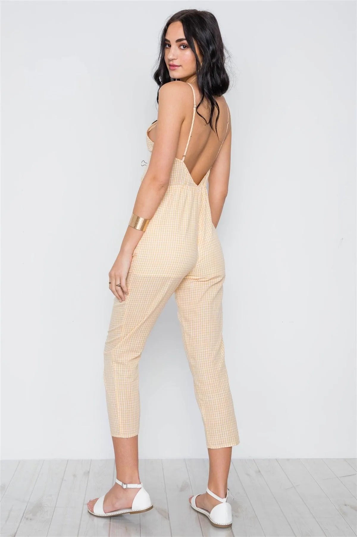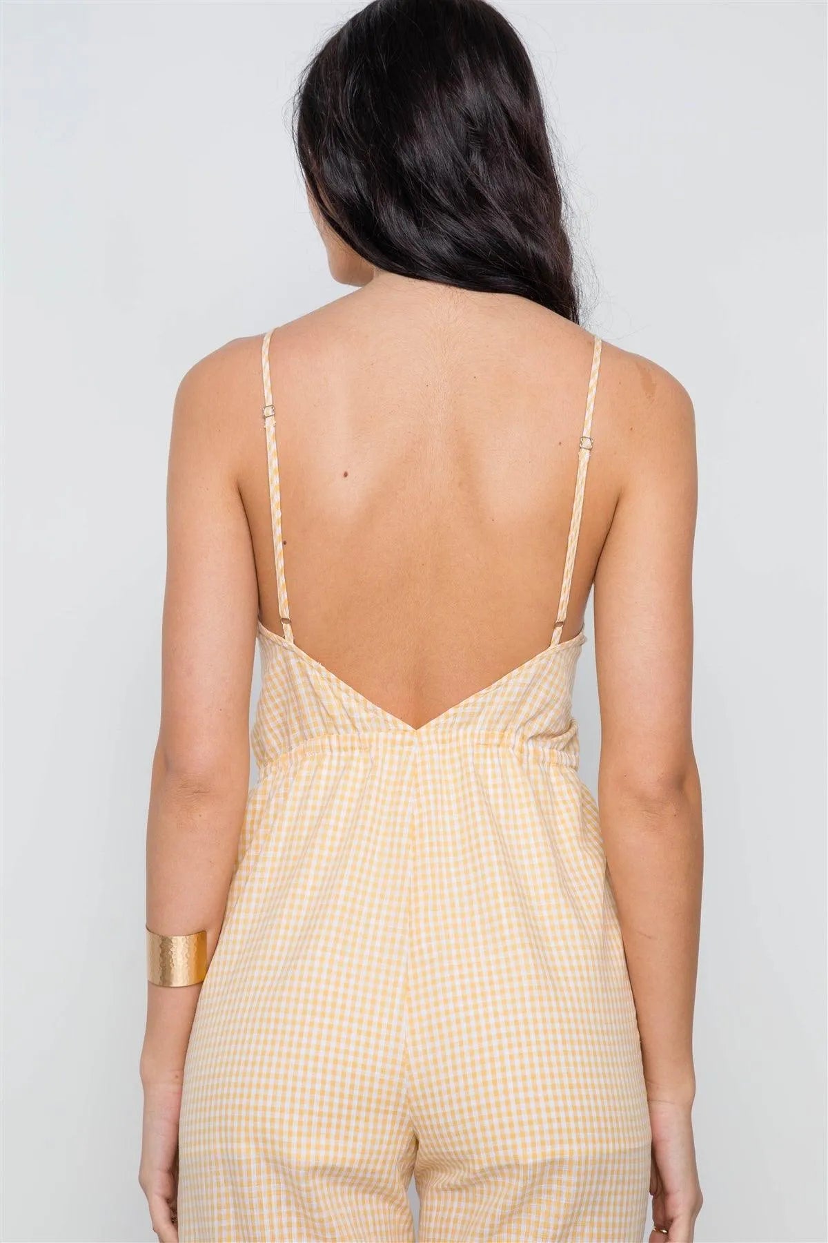 Yellow Cami Strap Gingham Open Back Boho Jumpsuit /1-2-2-1