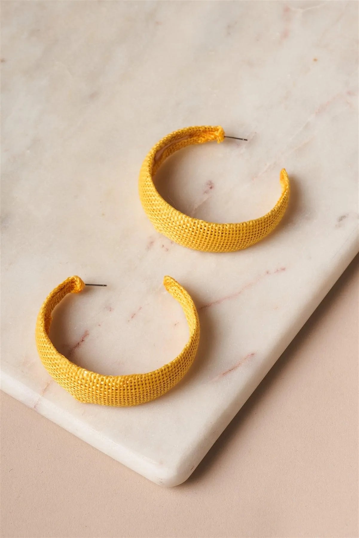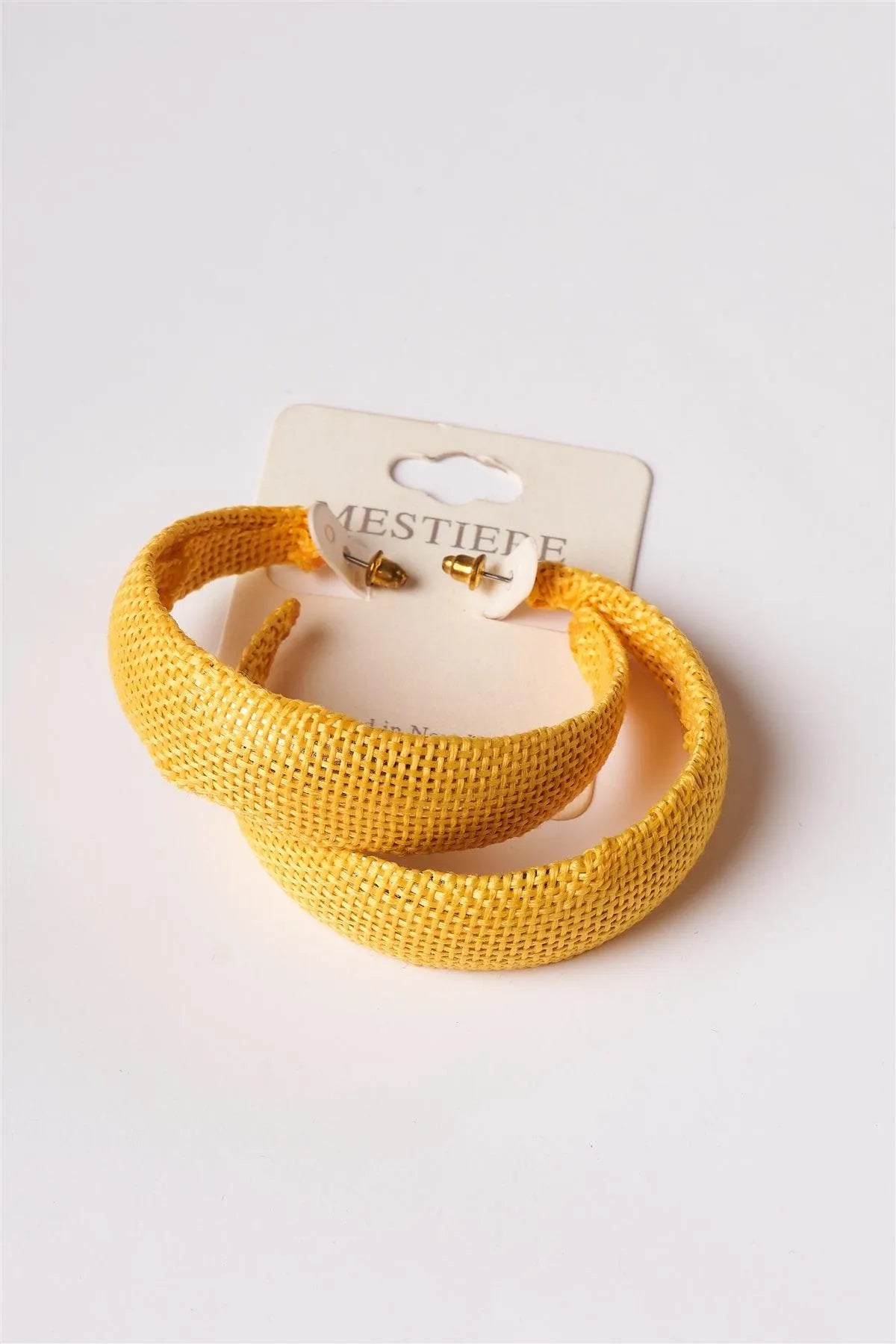 Yellow Chunky Burlap Hoop Earrings /3 Pairs