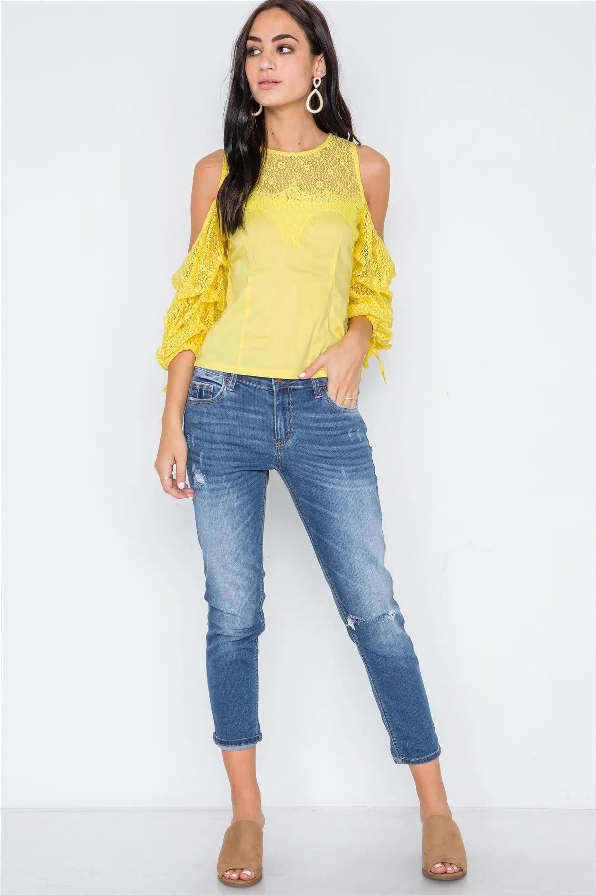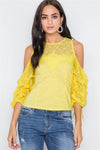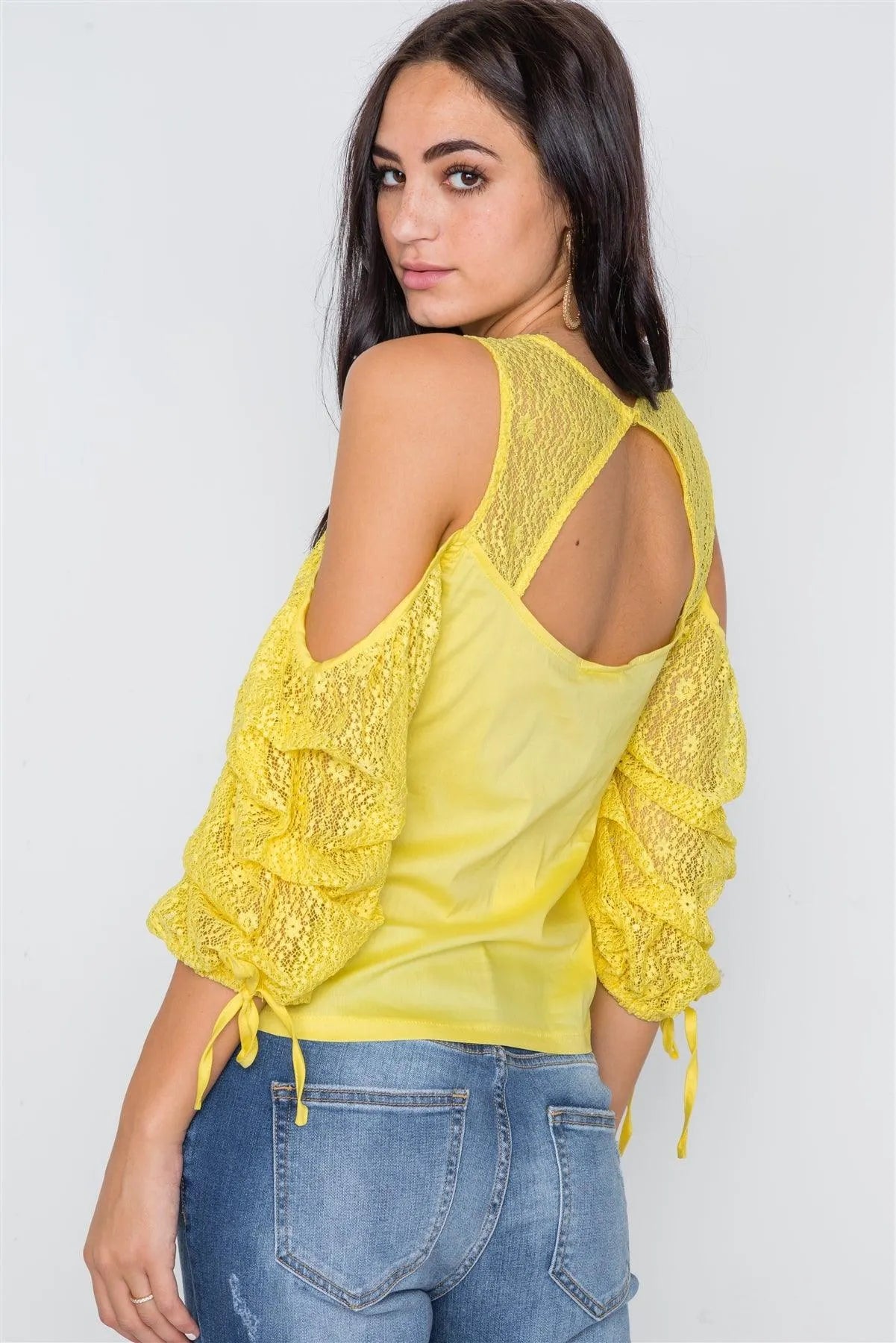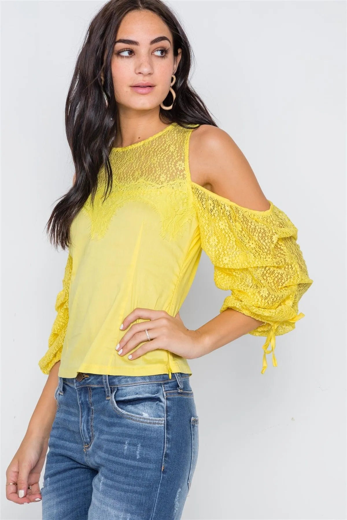 Yellow Cold Shoulder Puff Sleeves Lace Combo Top /2-2-2
