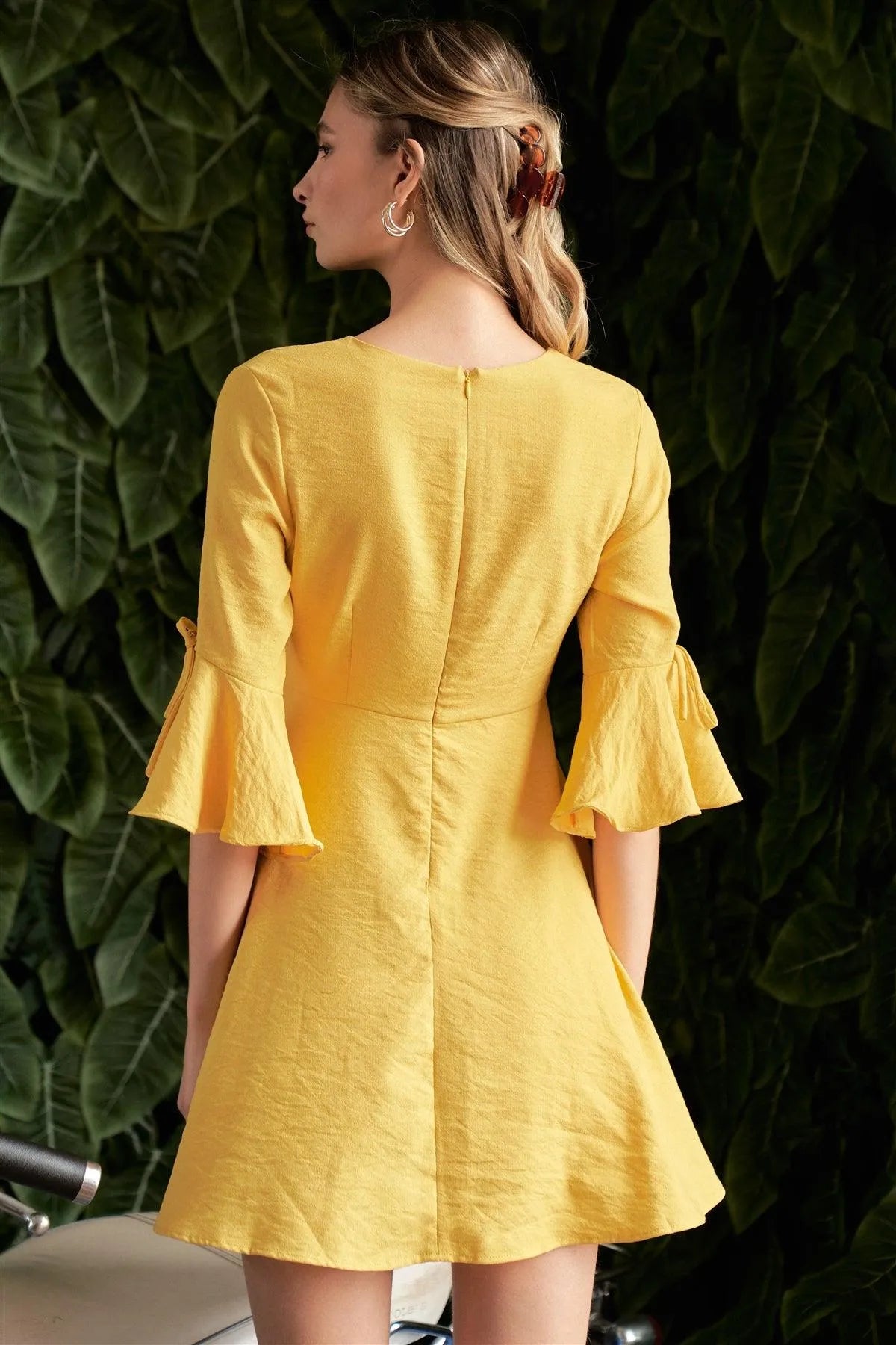 Sunny Side Yellow Flare Bell Sleeve V-Neck A-Line Mini Dress /1-2-2-1