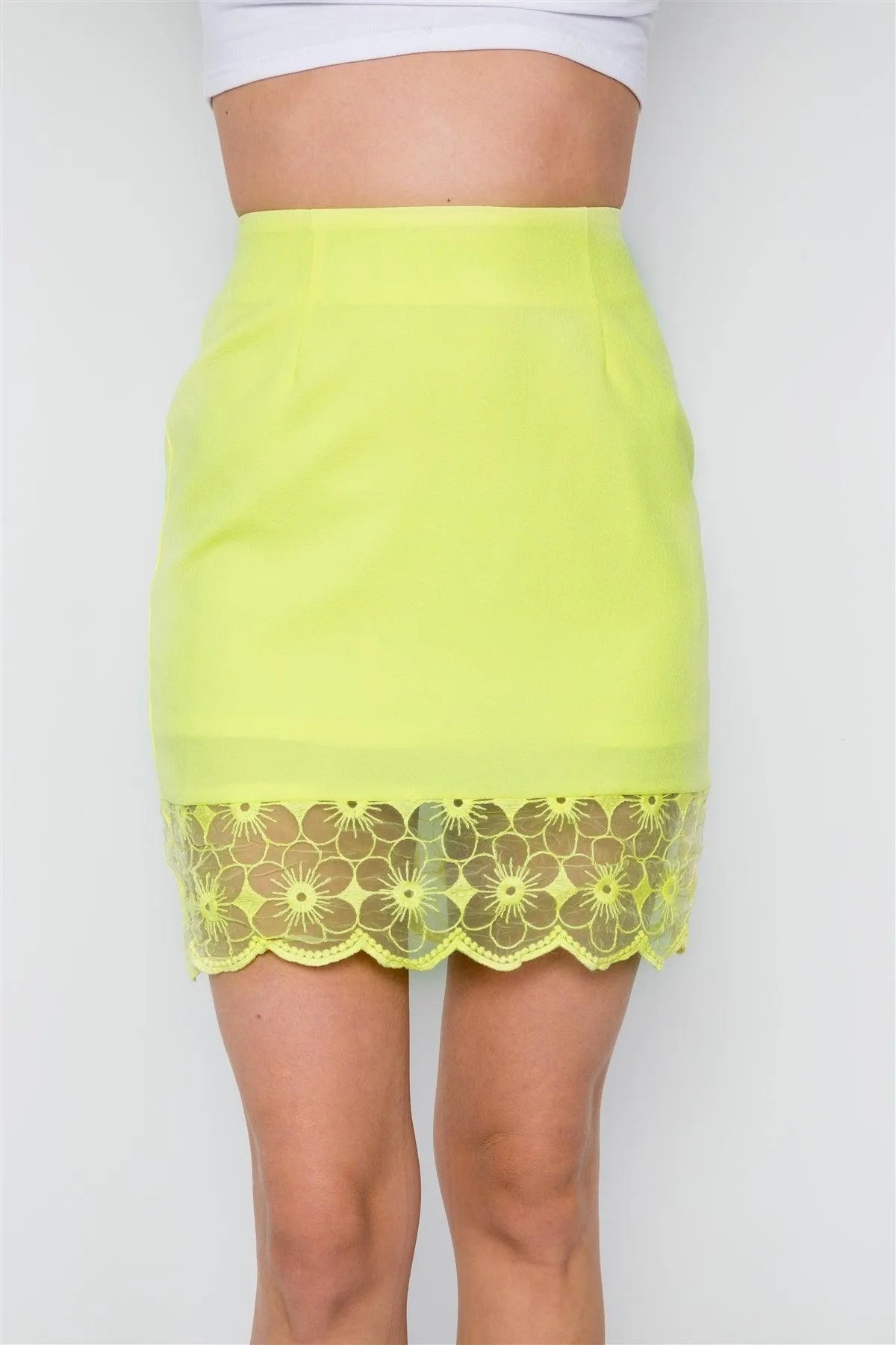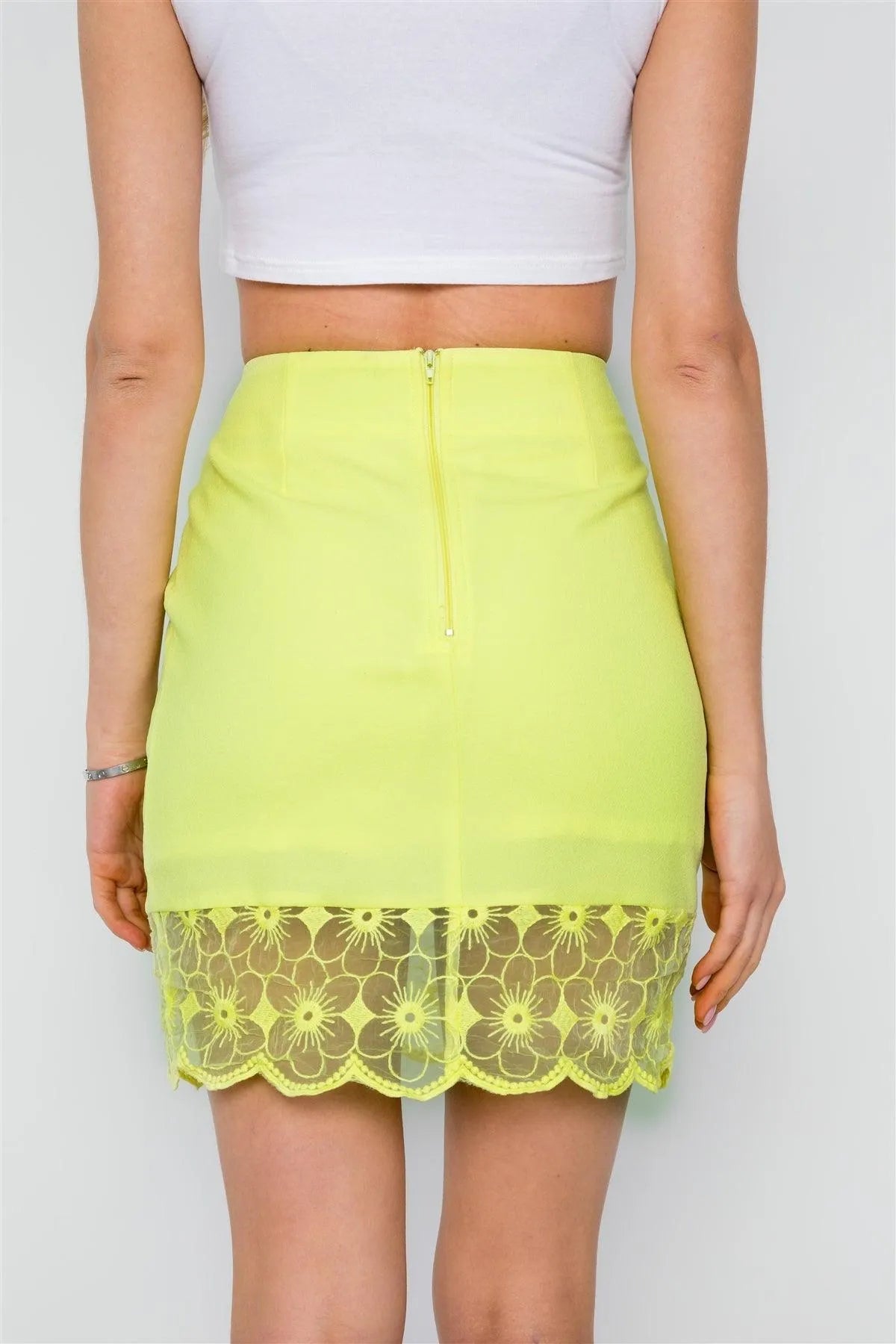 Yellow High Waist Floral Embroidery Mini Skirt /2-2-2