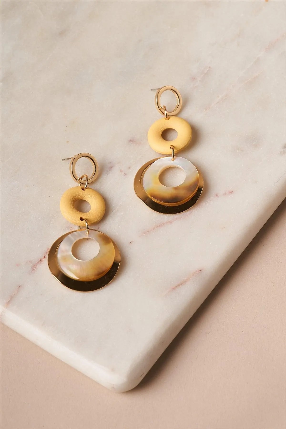 Yellow Ivory Circle Disc Tier Earrings /1 Pair