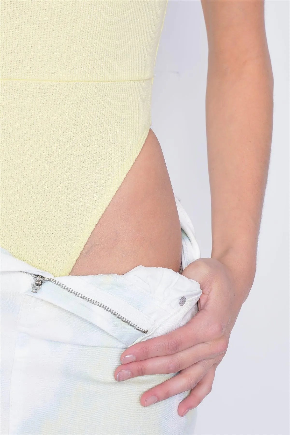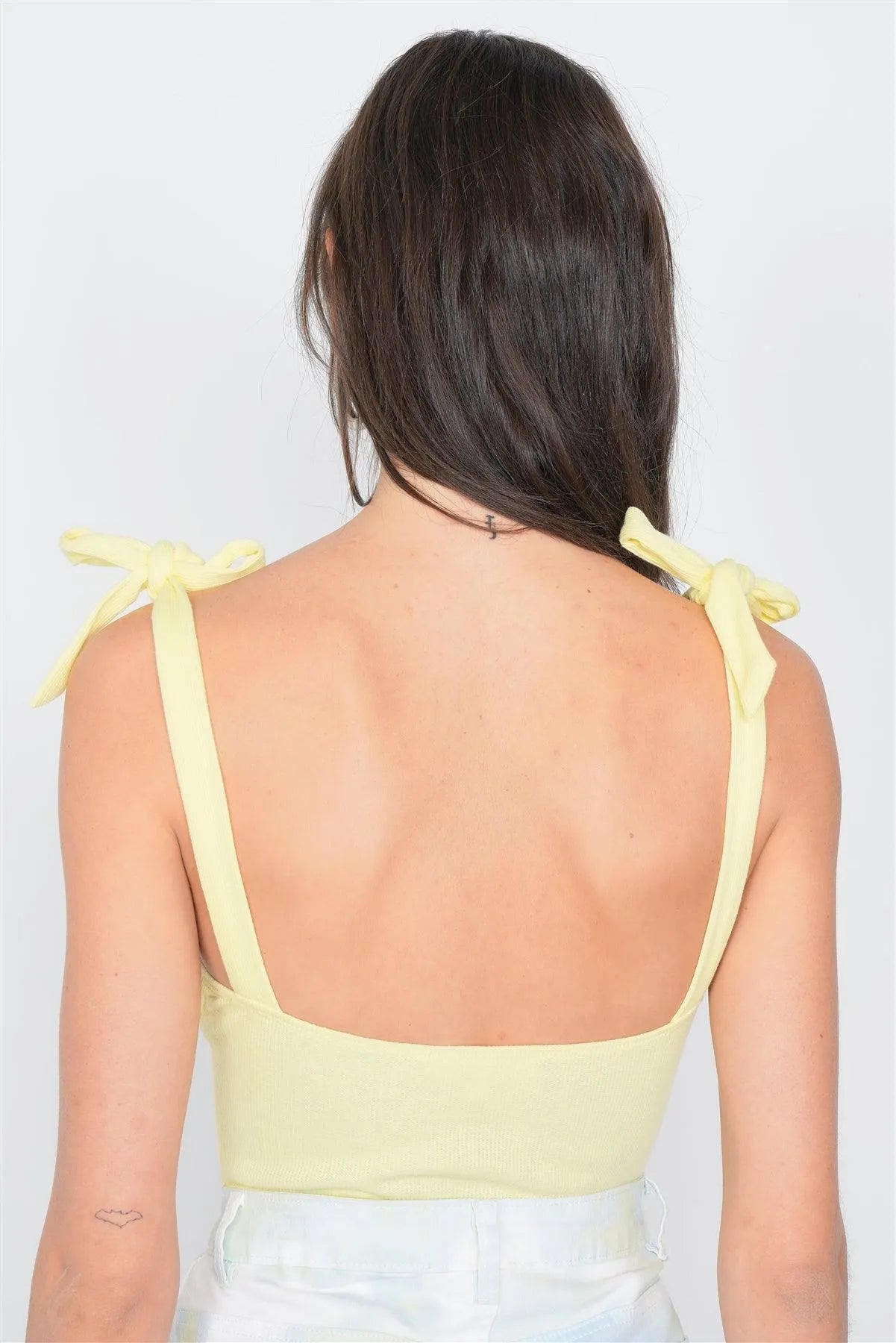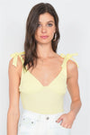 Yellow Knot Shoulder V-Neck Thong Snap Bodysuit