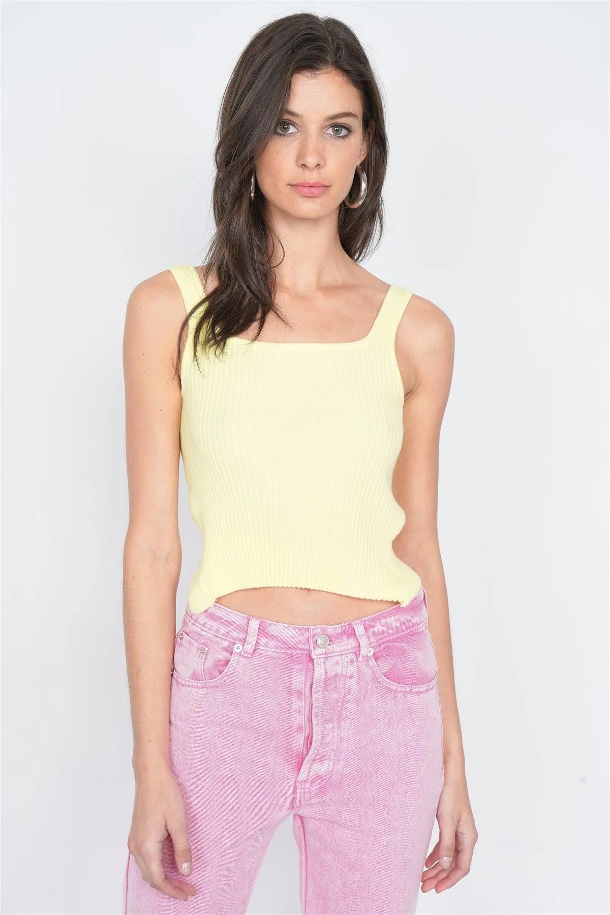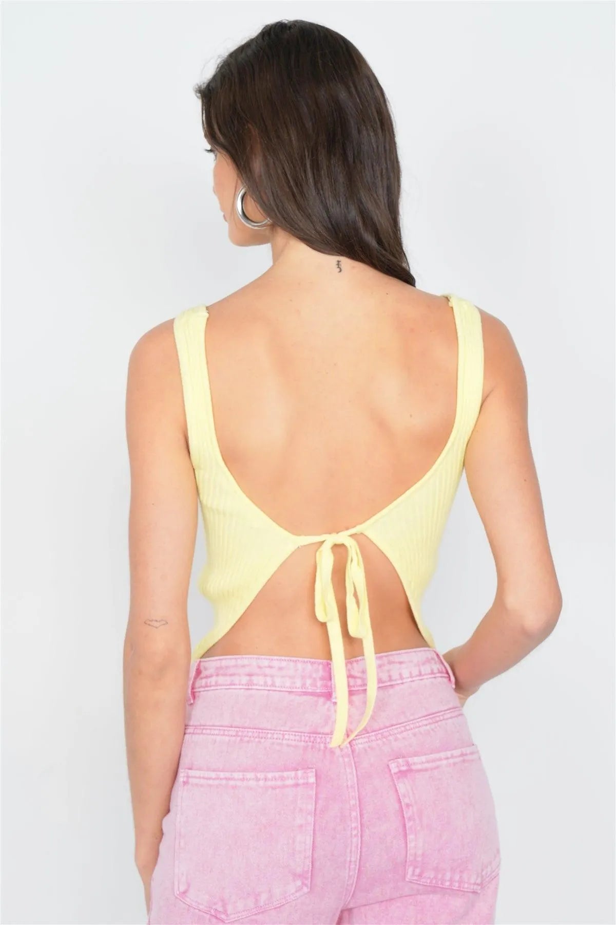 Yellow Ribbed Open Back Bow Casual Cami Top /2-1-1