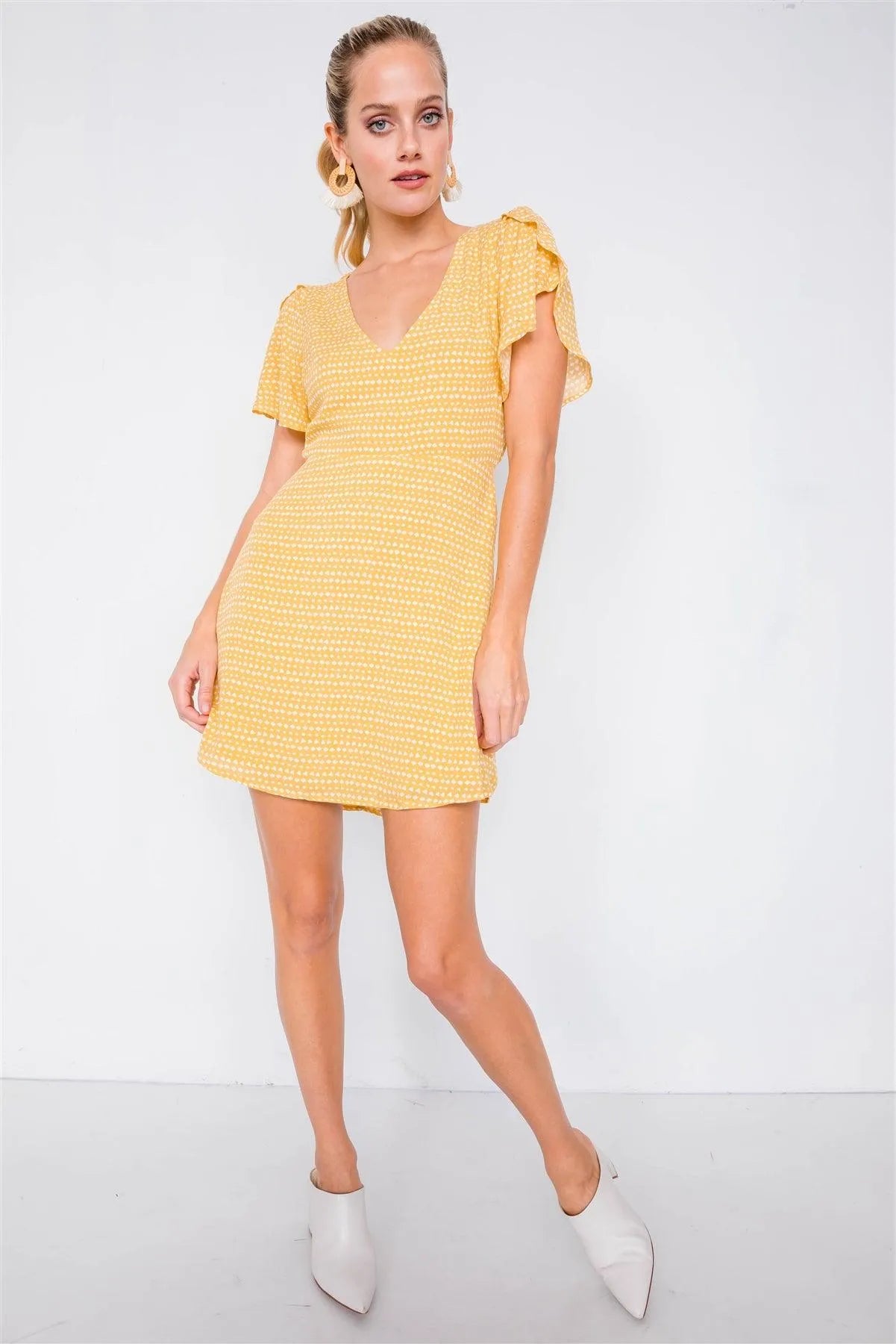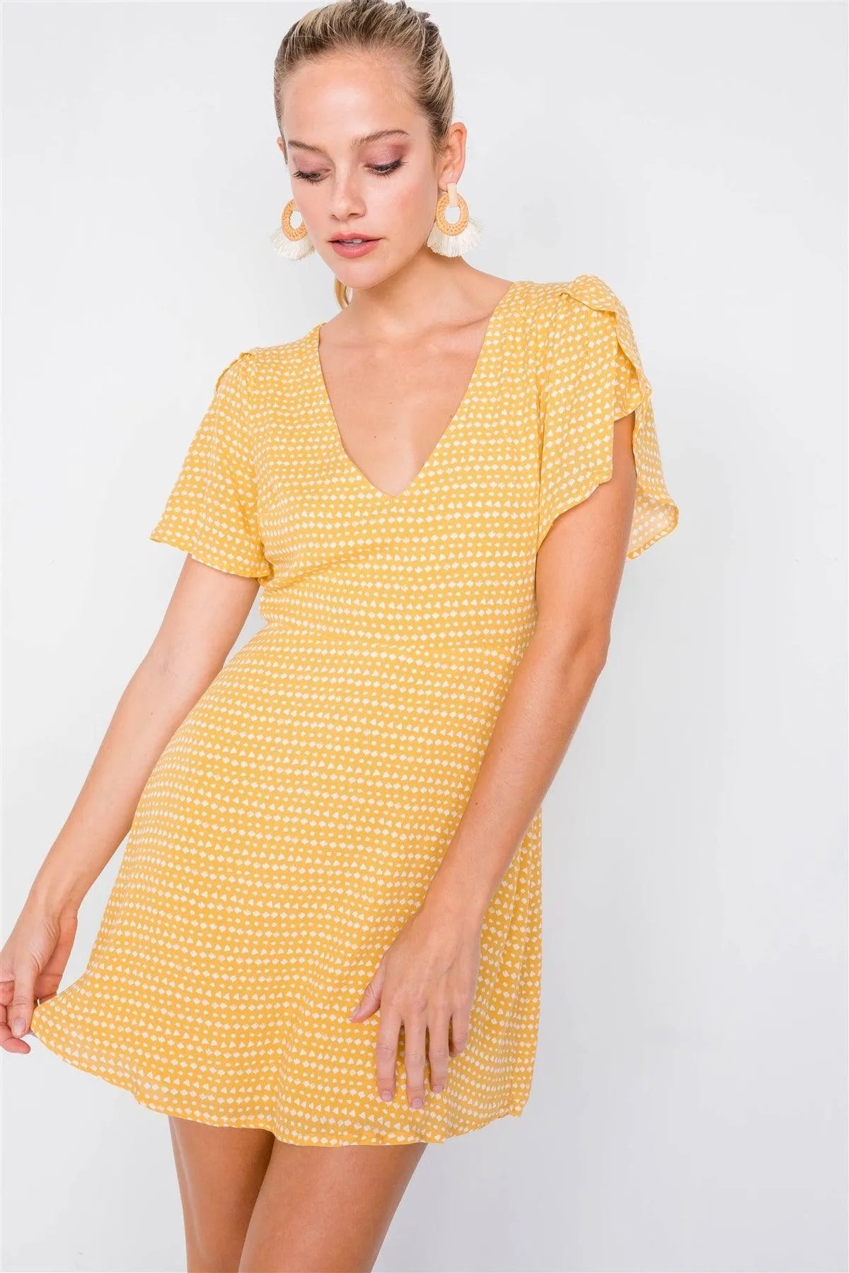 Yellow V-neck Open Back Mini Chic Sundress /3-2-1