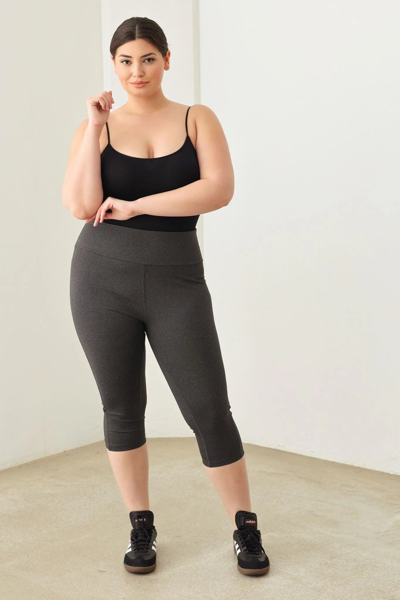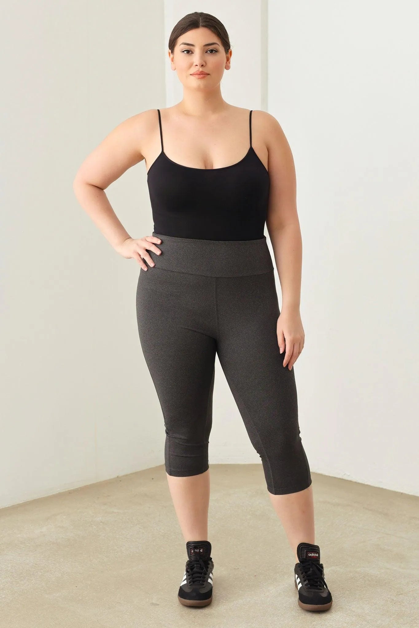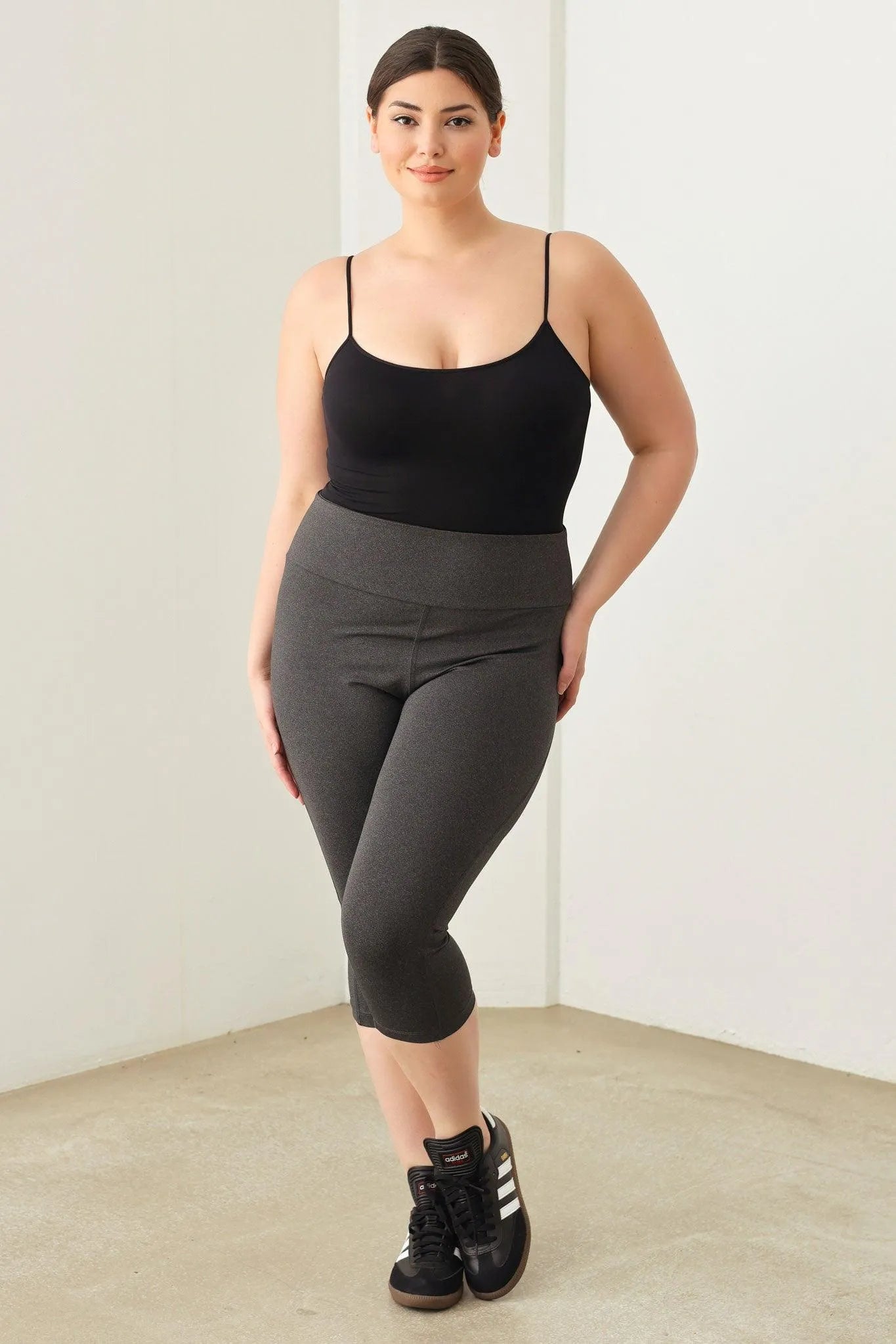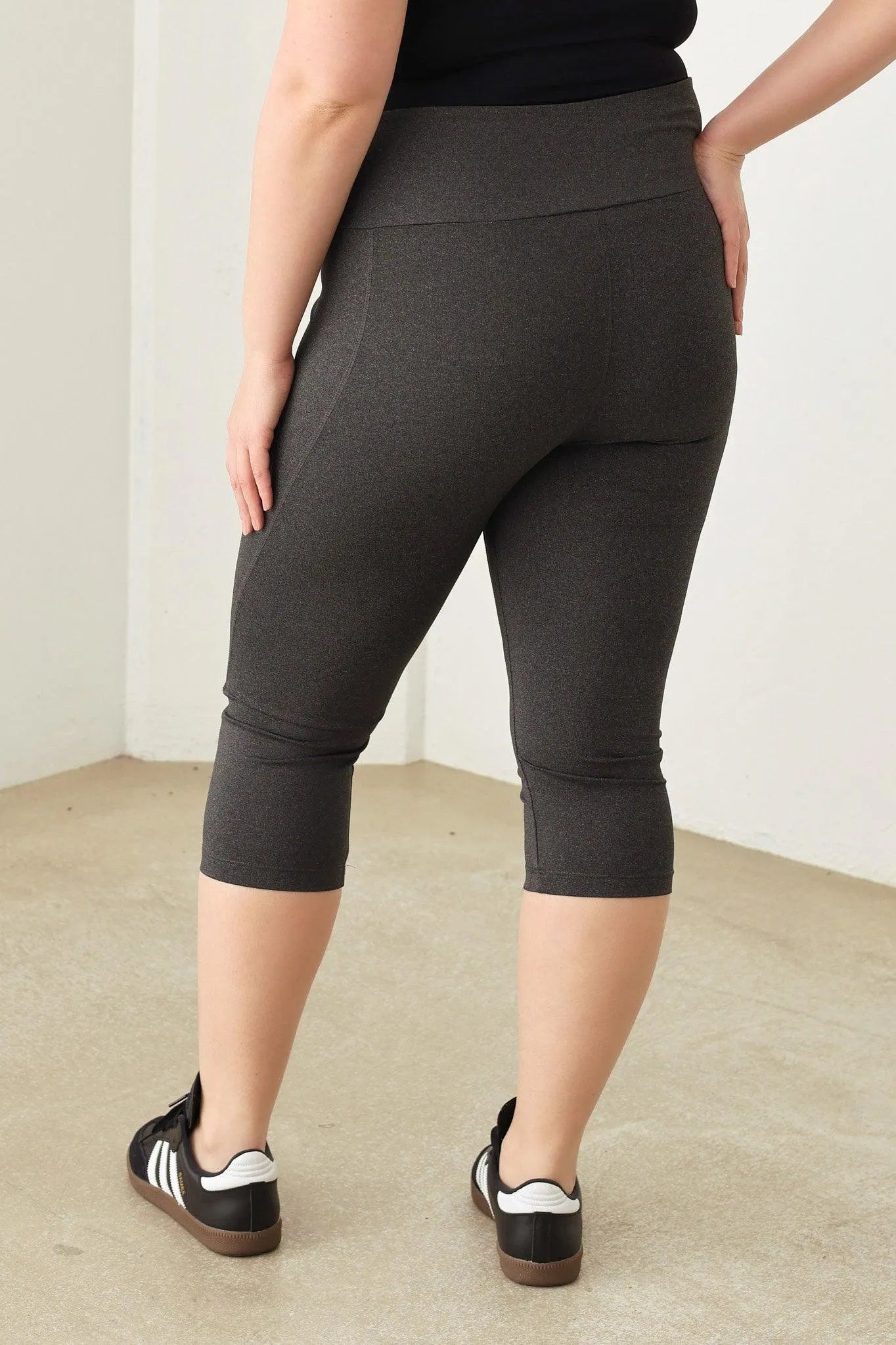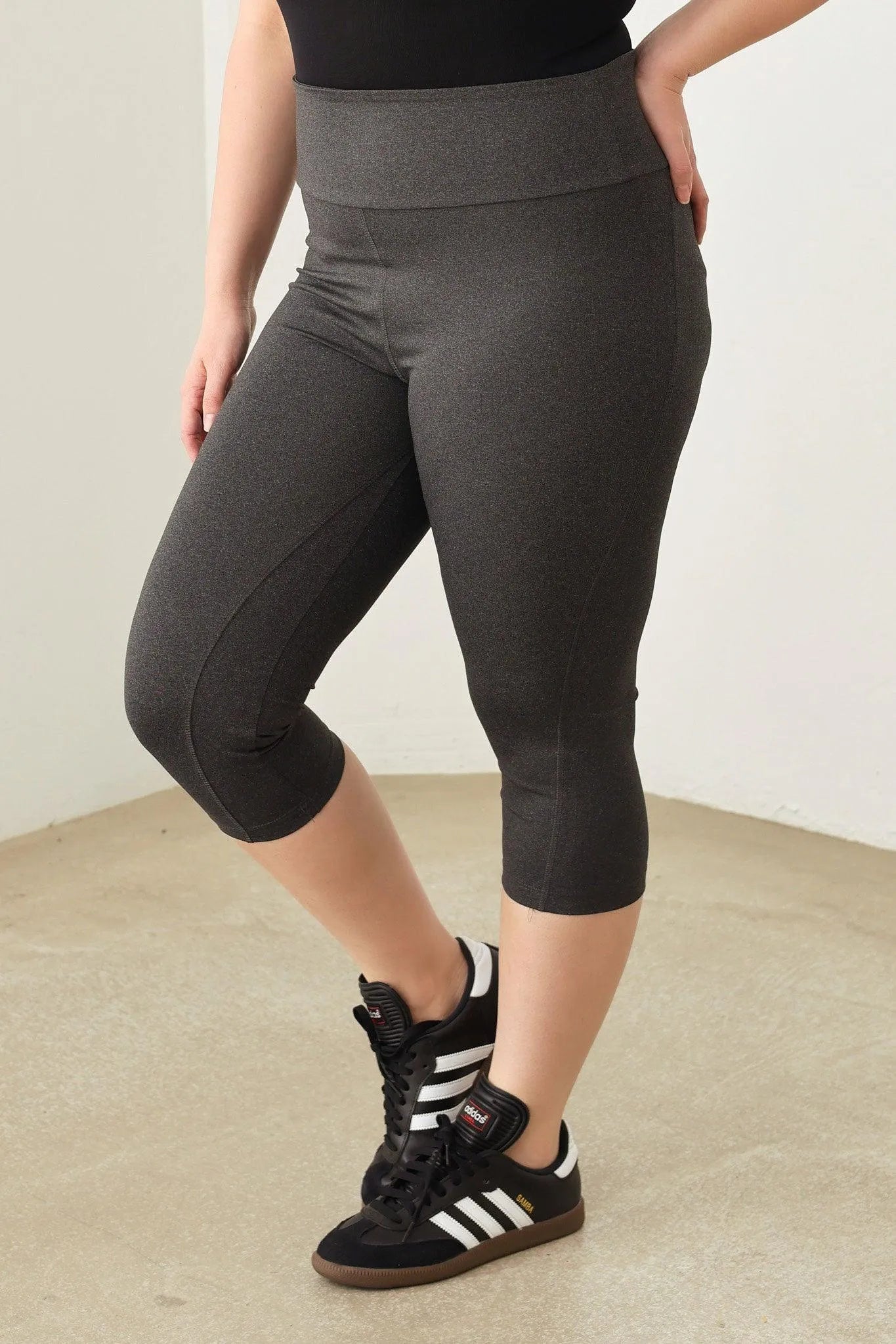 🖤 Get your zen on in these Plus Size capri Yoga leggings! Designed for comfort and flexibility, these shorts are perfect for a peaceful yoga session or a casual day out. With a wider fit and soft material, you'll feel supported and comfortable no matter what your day holds. Namaste in style!