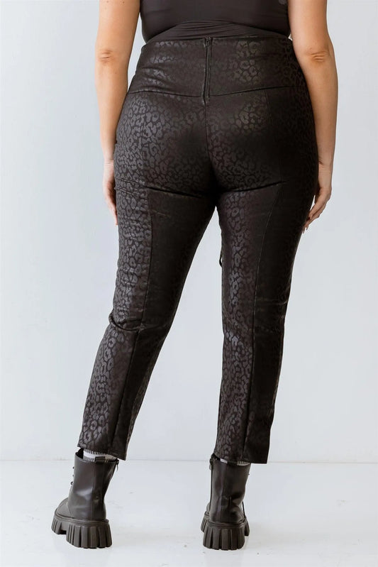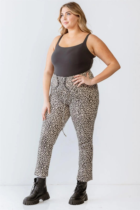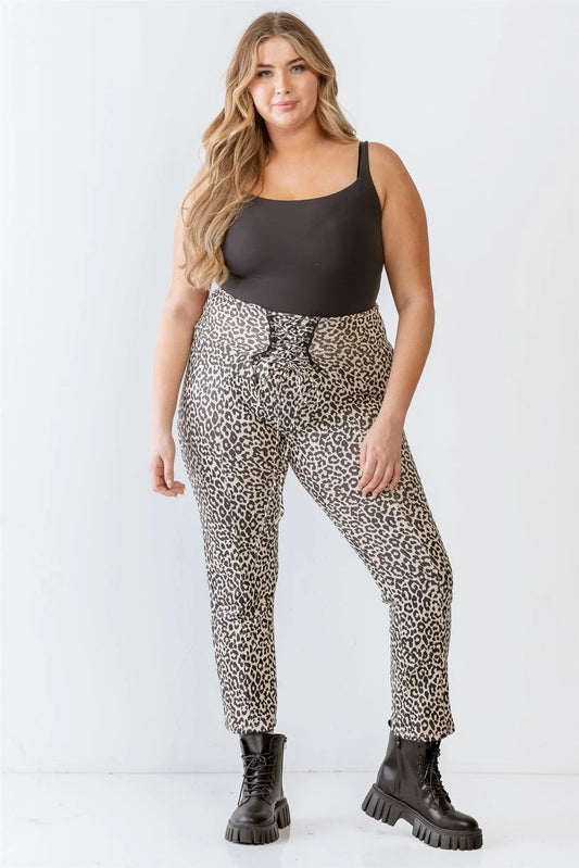 Plus Size Leopard Print Lace-Up Fitted Pants /1-1-1Vendor:Janette Plus