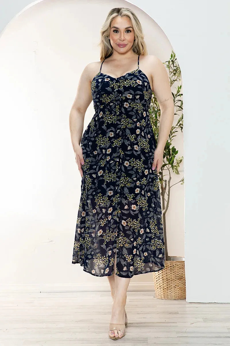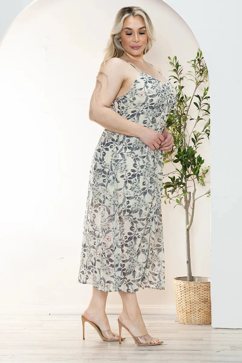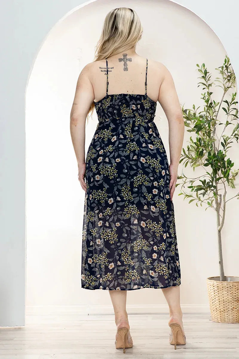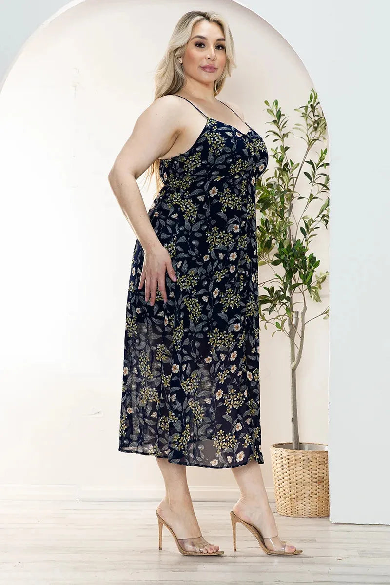 Junior Plus Size Floral Chiffon Sweetheart Neckline Midi Dress