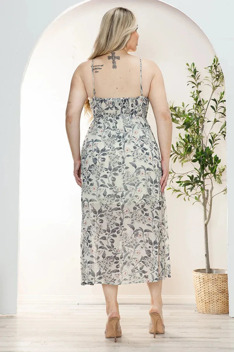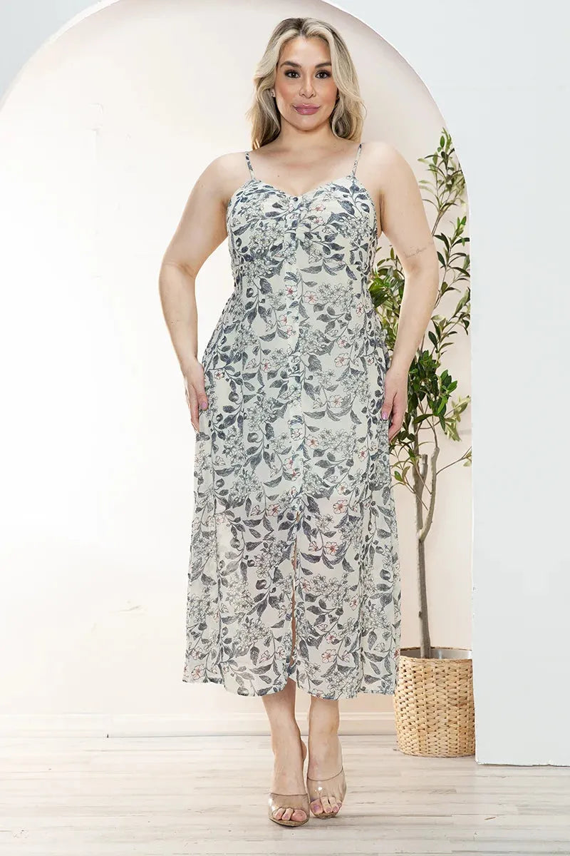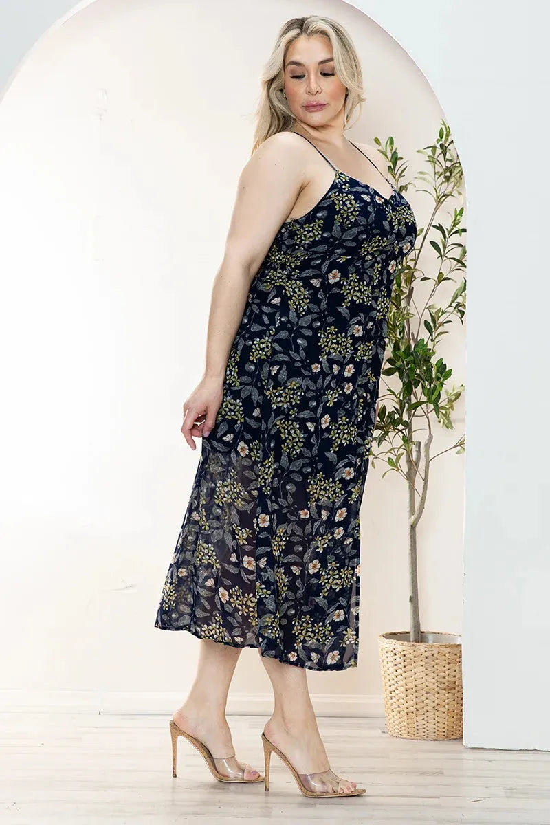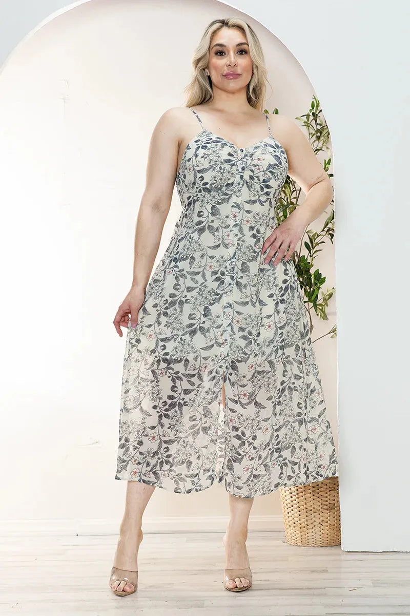 Junior Plus Size Floral Chiffon Sweetheart Neckline Midi Dress